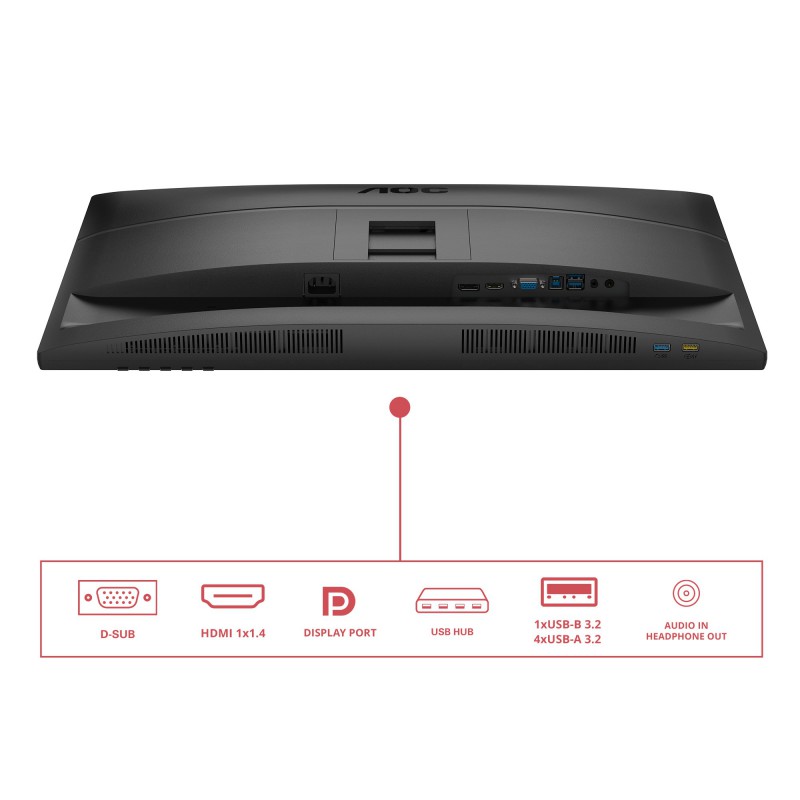 AOC 27E4U. Taille de l'écran: 68,6 cm (27"), Résolution de l'écran: 1920 x 1080 pixels, Type HD: Full HD, Technologie d'affichage: LED, Temps de réponse: 4 ms, Format d'image: 16:9, Angle de vision horizontal: 178°, Angle de vision vertical: 178°. Haut-parleurs intégrés. Concentrateur USB intégré, Version du concentrateur USB: 3.2 Gen 1 (3.1 Gen 1). Montage VESA, Réglage de la hauteur. Couleur du produit: Noir